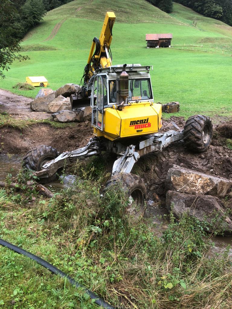 Alle unsere Bagger verfügen über einen Russpartikelfilter und der Menzi Muck A71 auch über biologisch abbaubares Hydrauliköl für den EInsatz in Gewässern.